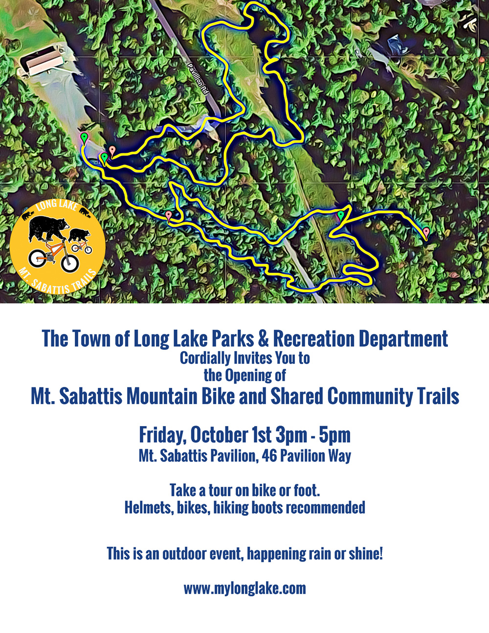 On October 1, 2021 The Town of Long Lake Parks, Recreation and Tourism Department will officially dedicate and open 2km of newly built Mountain Bike / Shared Use Trails at the Mt. Sabattis Recreation area in Long Lake.