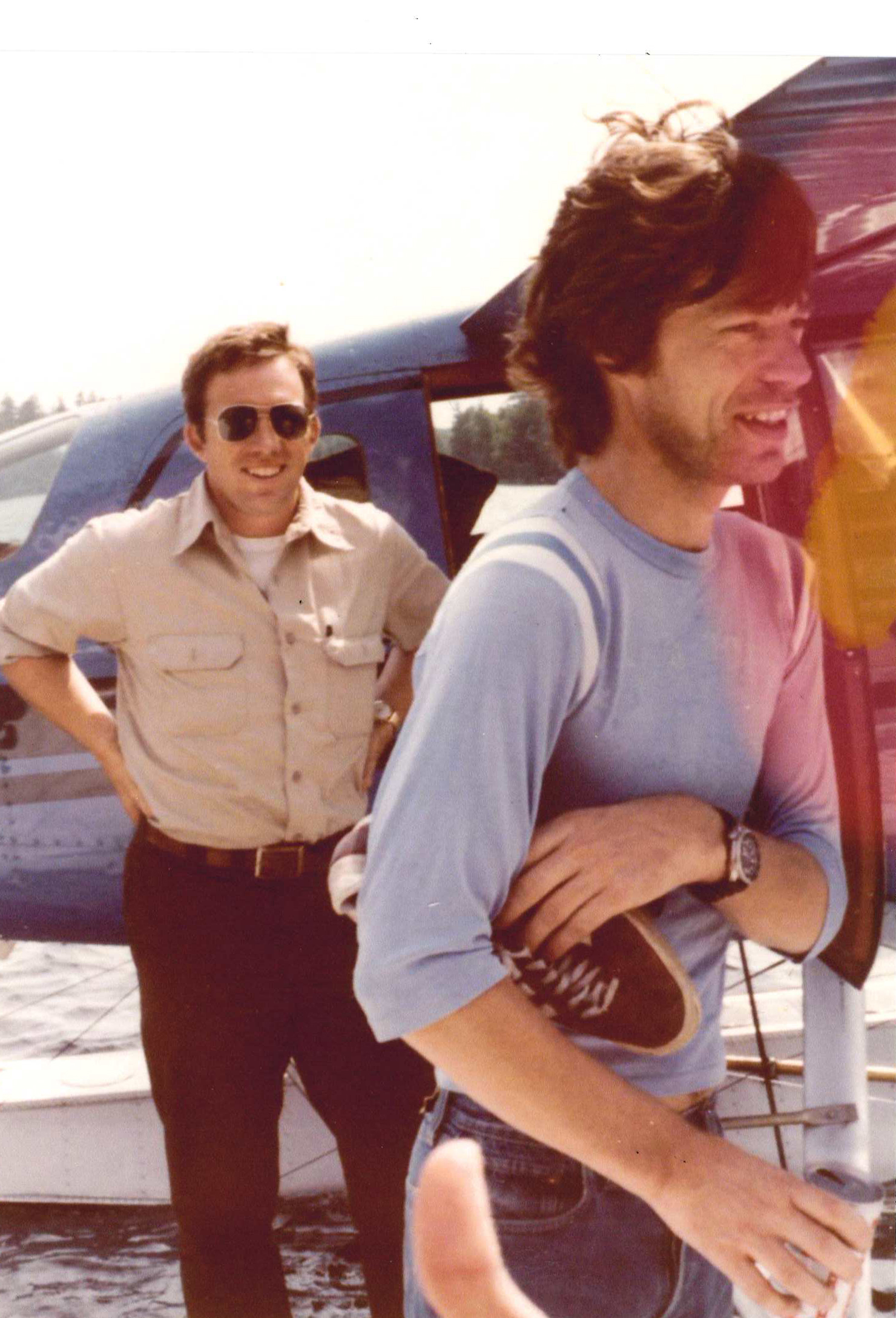 Mick Jagger with Tom Helms in Long Lake, NY in the 1980’s at Helms Seaplane Base