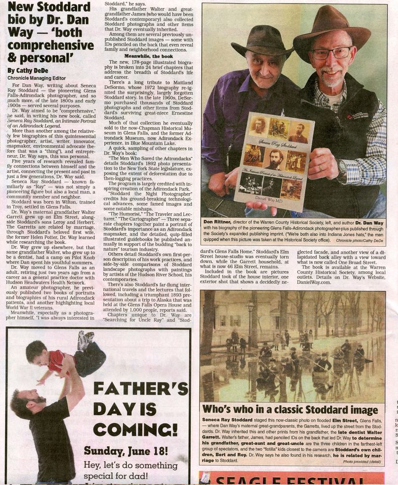 Since retiring, he has completed work on his most recent book, Seneca Ray Stoddard; An Intimate Look at an Adirondack Legend. It includes almost 300 illustrations and covers new ground that celebrates many facets of the legendary Victorian-era photographer/environmentalist/author/traveler/surveyor/lecturer/publisher, including many that have never been published before.