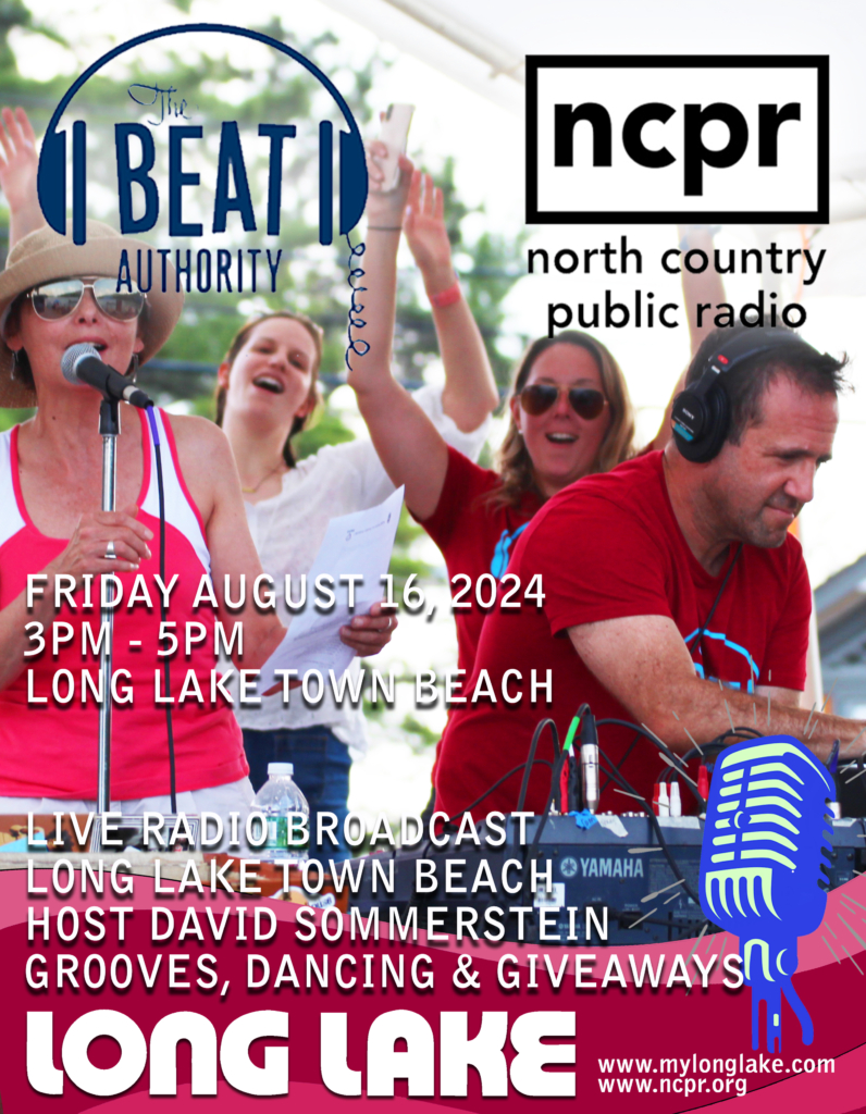 It’s a power packed musical Friday at the Long Lake Town Beach on Friday, August 16th. Join us on the beach as Long Lake hosts The Beat Authority, live NCPR radio broadcast, with David Sommerstein is a Friday show (Friday at 3:06 pm to be exact.). It’s a kick into the weekend, a bounce for your afternoon, a swing for your end-of-the-week step. A fresh, eclectic choice of dance music from all over the world. You may hear cumbia or bluegrass or afrobeat or jazz, but it’ll keep your head a-noddin’ and your spirits up. Join in the groove and enjoy. And if you have suggestions, e-mail ’em in!