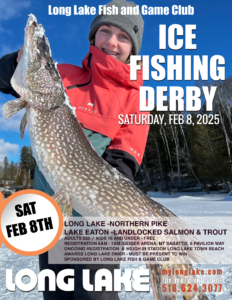 Anglers of all ages are invited to cast their lines in this annual competition hosted by the Long Lake Fish and Game Club. Cash prizes and trophies are up for grabs. Registration begins at the Long Lake Geiger Arena located at 6 Pavilion Way, Mt. Sabattis Recreation Area followed by weigh in at the Long Lake Town Beach, 1204 Main Street, Long Lake, NY on the morning of the event.