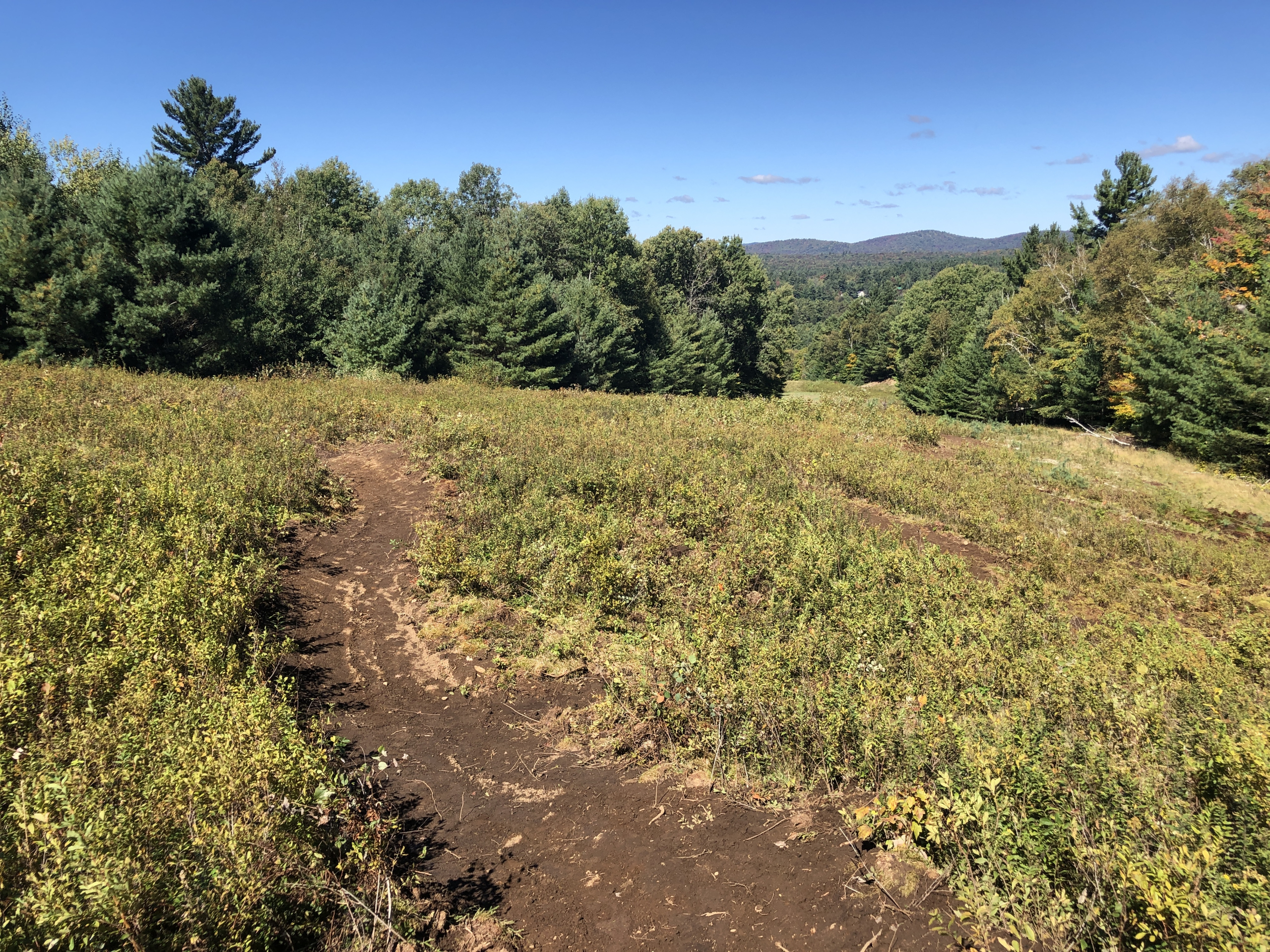 WAITING ON A FRIEND (.3km) A beginner, TWO-WAY, machine-built spur trail that branches off Black & Blue on east edge of the field. This trail is very flat and wide is a good spot to stop for a quick breather while riding, or a good spot to let the dog get a drink of water.