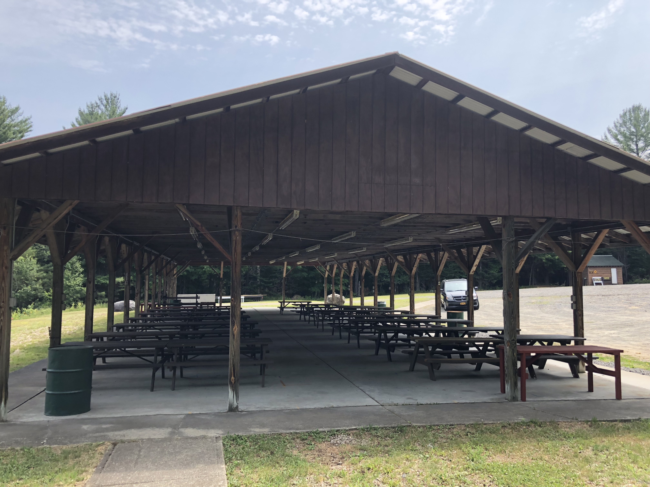 The Pavilion – a 90×40 foot covered building boasting picnic tables, restrooms, views of Long Lake and a parking lot. This is a great space to picnic or if you are a Long Lake or Raquette Lake property owner you can contact the Parks and Recreation Department to book your space for private parties. First come first served. The Pavilion is also a great place to park to access our Mixed-Use Recreational Trails. Walker, hikers and bikers are invited to check out the Mt. Sabattis Trails with over 4Km of built trails. Everyone is welcome to access these trails.