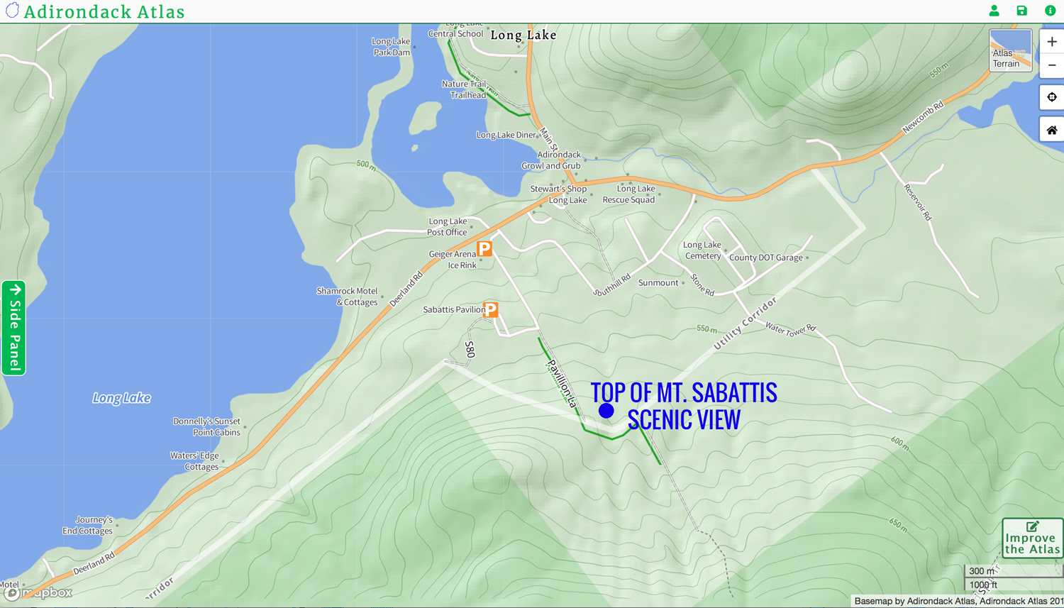 Something you should know about driving to Long Lake, google maps has not caught up with our GPS and GIS Address systems. So to get here enter 46 Pavilion Road, Long Lake, NY to get directions to the Mt. Sabattis Pavilion. The Geiger Arena/Tennis Courts are located and numbered as 6 Pavilion Lane and 46 Pavilion Lane and sometimes show up in maps as 12 Pavilion Road. Technology hasn’t totally caught up to our area, but we are working with the correct agencies to have this corrected. The Geiger Arena/Tennis courts are located at the bottom of Mt. Sabattis and access the entry to the facility next to the giant flagpole across from the Long Lake Post Office. The Pavilion is located mid-way up the hill and the road to the Pavilion is open to vehicles after mud-season and closed for winter months.
