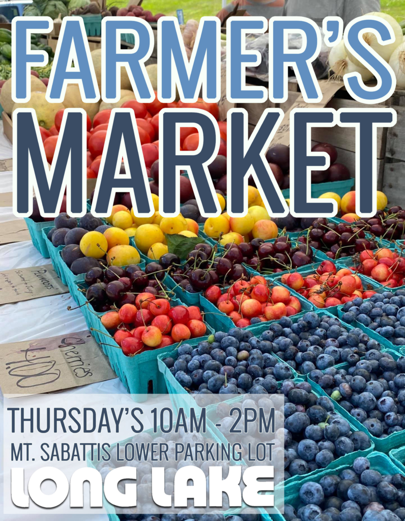 Long Lake Farmer’s MarketLong Lake Farmer’s Market 2025. Mt. Sabattis Lower Parking Lot. Every Thursday 10am – 2pm thru August 28th 0 events found. Notice There were no results found. Notice There were no results found. Views Navigation Event Views Navigation Summary List Day Today Upcoming Upcoming Select date. Previous Events Today Next Events Subscribe to calendar Google Calendar iCalendar Outlook 365 Outlook Live Export .ics file Export Outlook .ics file FacebookXPinterestEmail