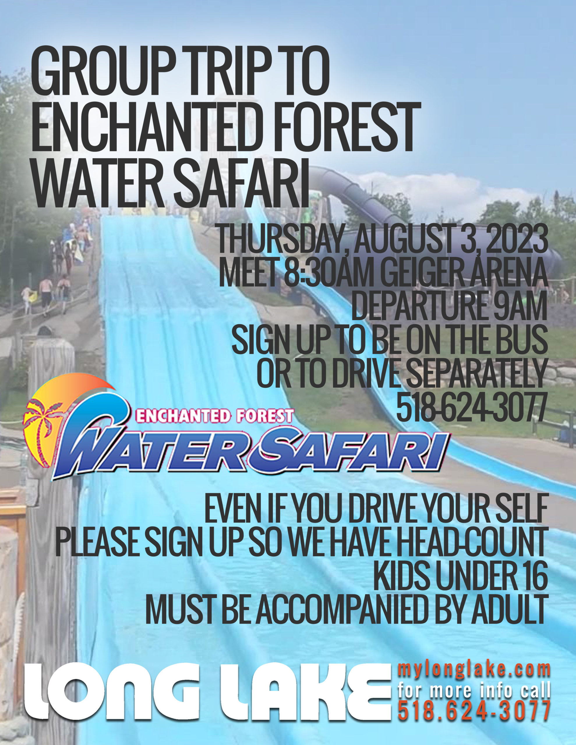 8:30am. The bus leaves for the Group trip to Enchanted Forest, Water [...]